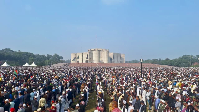 জনজোয়ারে তিনবারের সাবেক প্রধানমন্ত্রী ও বিএনপির চেয়ারপারসন খালেদা জিয়ার জানাজা অনুষ্ঠিত হয়েছে। বুধবার (৩১ ডিসেম্বর) বিকেল ৩টা ৩ মিনিটের দিকে জাতীয় সংসদ ভবনের দক্ষিণ প্লাজা তথা মানিক মিয়া অ্যাভিনিউয়ে লাখো মানুষের উপস্থিতিতে জানাজা অনুষ্ঠিত হয়।