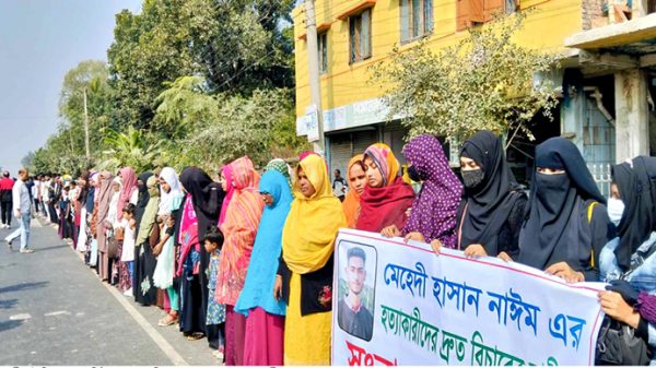 ঈশ্বরদী ইপিজেডের কম্পিউটার অপারেটর মেহেদী হাসান নাইম (২০) হত্যায় জড়িতদের গ্রেফতারের দাবীতে বিক্ষোভ মিছিল, ঈশ্বরদী-বানেশ্বর মহাসড়ক অবরোধ ও মানববন্ধন অনুষ্ঠিত হয়েছে। শনিবার (১১ জানুয়ারী) বেলা ১২ টার দিকে নাইমের বাড়ির