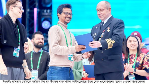 রাশিয়ায় সম্প্রতি অনুষ্ঠিত বিশ্ব যুব উৎসব’২০২৪ এ অংশগ্রহণকারীদের মধ্য থেকে বাংলাদেশী যুবক কৌশিক আহমেদসহ আটটি দেশের ১৫ জন যুবক পারমাণবিক আইসব্রেকারে উত্তর মেরু ভ্রমণের অনন্য সুযোগ লাভ করেছে। বৈজ্ঞানিক ও