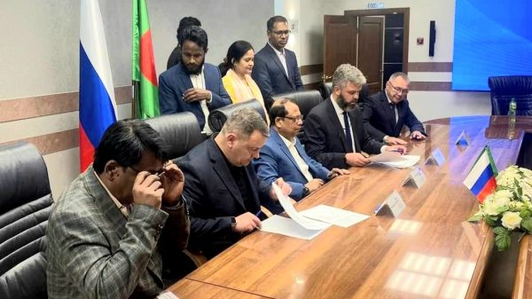 ঈশ্বরদীতে নির্মাণাধীন রূপপুর পারমাণবিক বিদ্যুৎ কেন্দ্রের জ্বালানীর (ইউরেনিয়াম) প্রথম চালান দেশে আনতে চূড়ান্ত প্রটোকল স্বাক্ষর হয়েছে। বুধবার (৯ আগস্ট) রাশিয়ার সাইবেরিয়ায় অবস্থিত ইউরেনিয়াম প্লান্টে বাংলাদেশ-রাশিয়ার এই প্রটোকল স্বাক্ষরিত হয়েছে বলে