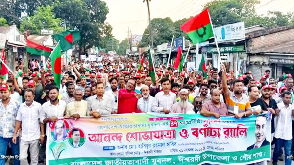 যুবদলের ৪৭তম প্রতিষ্ঠাবার্ষিকী উপলক্ষ্যে শনিবার বিকালে ঈশ্বরদীতে বর্নাঢ্য শোভাযাত্রা বের করা হয়। শোভাযাত্রাটি ঈশ্বরদী রেলগেট থেকে শুরু হয়ে স্টেশন রোড হয়ে পুরাতন বাস টার্মিনালে সমাবেশের মধ্যে দিয়ে শেষ হয়। সমাবেশে