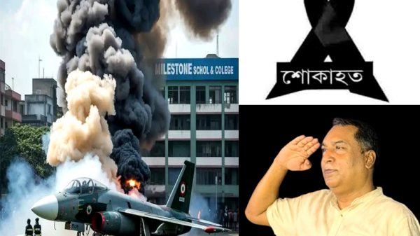 ‘উত্তরা মাইলস্টোন স্কুল এন্ড কলেজে বাংলাদেশের প্রশিক্ষণের একটি বিমান দুর্ঘটনায় যে হৃদয় বিদারক ট্র্যাজেডি ঘটেছে, তা জাতিকে গভীরভাবে শোকাহত ও বেদনাতুর করেছে।’ বিএনপি’র চেয়ারপার্সনের উপদেষ্টা ও পাবনা জেলা বিএনপি’র আহব্বায়ক