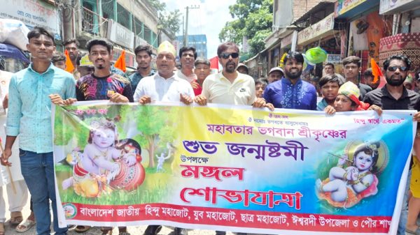 বর্ণাঢ্য আয়োজনের মধ্য দিয়ে ঈশ্বরদীতে শ্রীকৃষ্ণের শুভ জন্মাষ্টমী পালিত হয়েছে। শনিবার (১৬ আগস্ট) দুপুর ১২টায় বাংলাদেশ জাতীয় হিন্দু মহাজোট, যুব মহাজোট, ছাত্র মহাজোটের ঈশ্বরদী উপজেলা ও পৌর কমিটি, হরে কৃষ্ণ